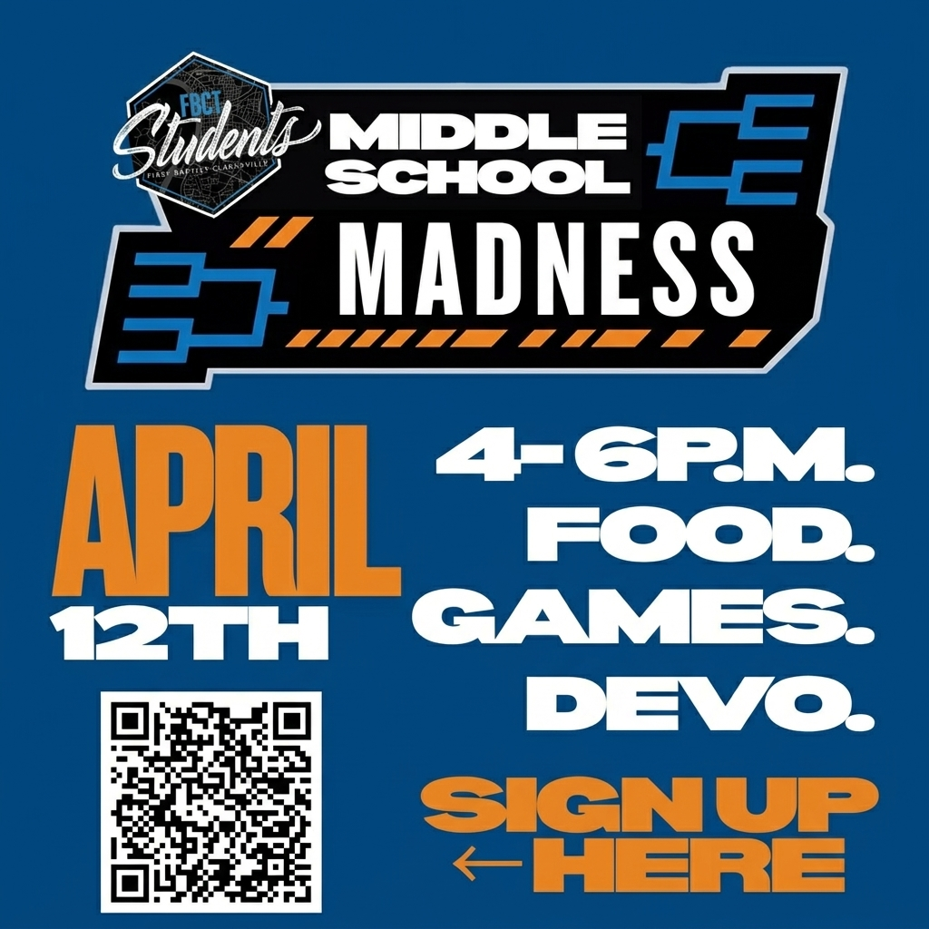 Middle School Madness will be a time for Middle School students to better get to know each other and us through food, fun, and fellowship. We'll have pizza provided for dinner followed by a tournament of playing nine square, gaga ball, and then ending with a Biblical Spelling Bee! This will be a more informal event for us to get to know your student better! We'll also have a devotion at the start.
