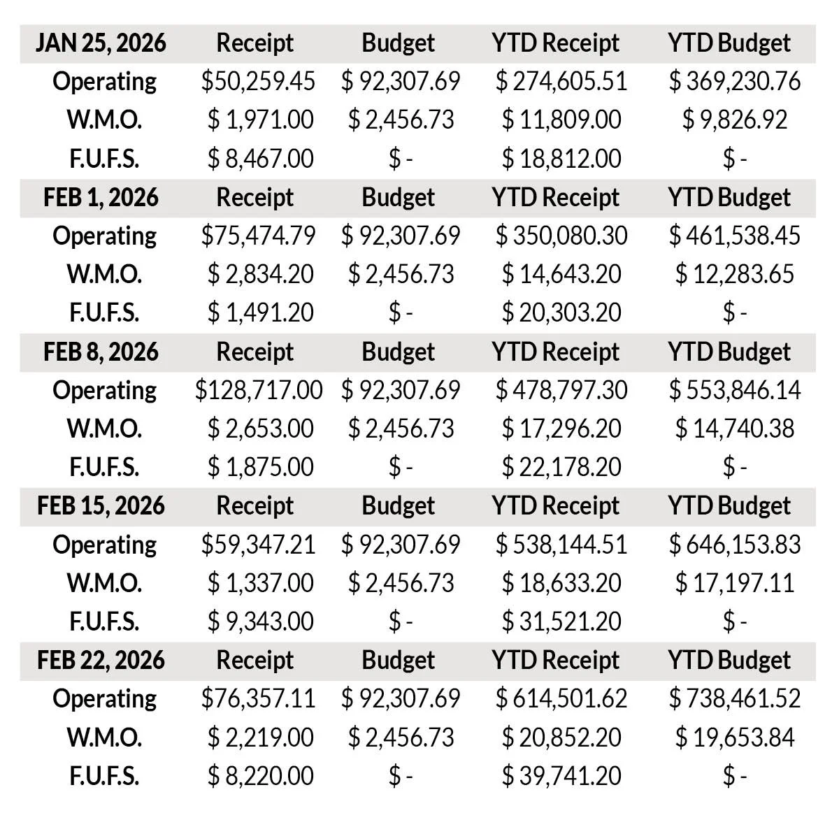Total On-Campus: Inclement Weather (No in-person service) Total Online: 14,774February 1, 2026: